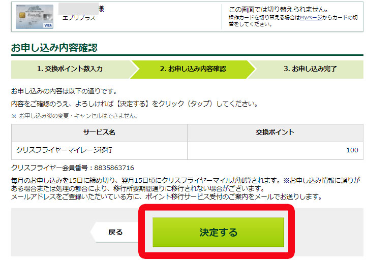 ②)7月25日、ワールドポイントへの交換完了を確認し、SQへ交換申請