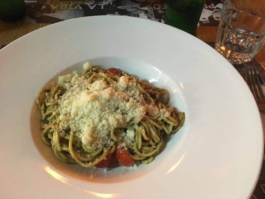 ペスト地区に戻って、簡単にイタリアンでパスタ食べて