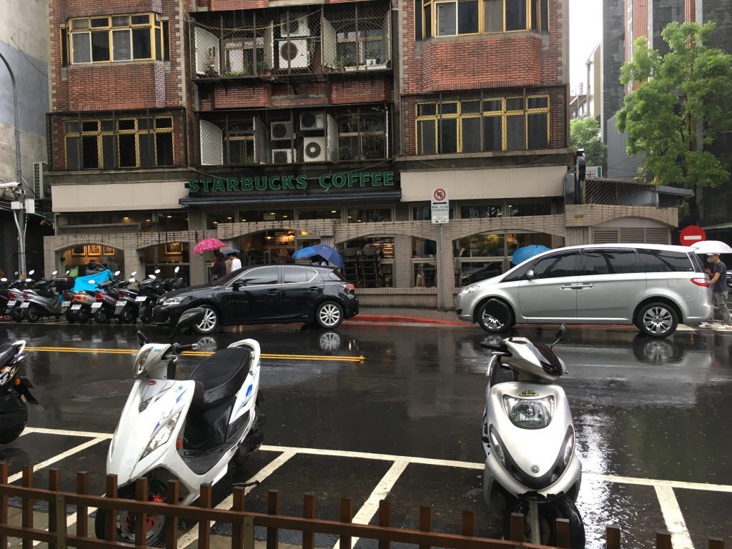 (あいにくの雨でいい写真が撮れませんでしたが、駅前にあるスタバも、普通にマンションの1階を